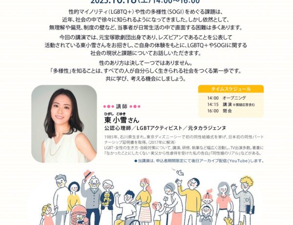 【10/17〆切】人権キャラバン講演会「LGBTQ+/SOGIの現状と課題 ~レズビアンである私の体験から~」