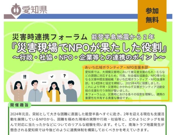 災害時連携フォーラム 能登半島地震から2年「災害現場でNPOが果たした役割」開催のご案内